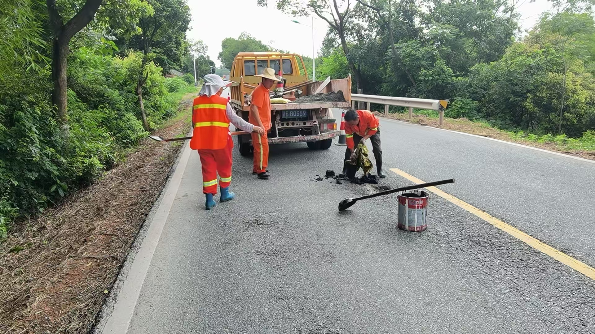 2025年6月18日,信丰公路分中心大阿道班养护人员修补路面坑槽