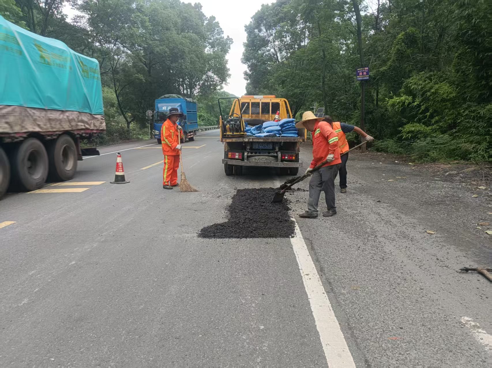 2025年6月19日,信丰公路分中心大塘道班养护人员修补路面坑槽