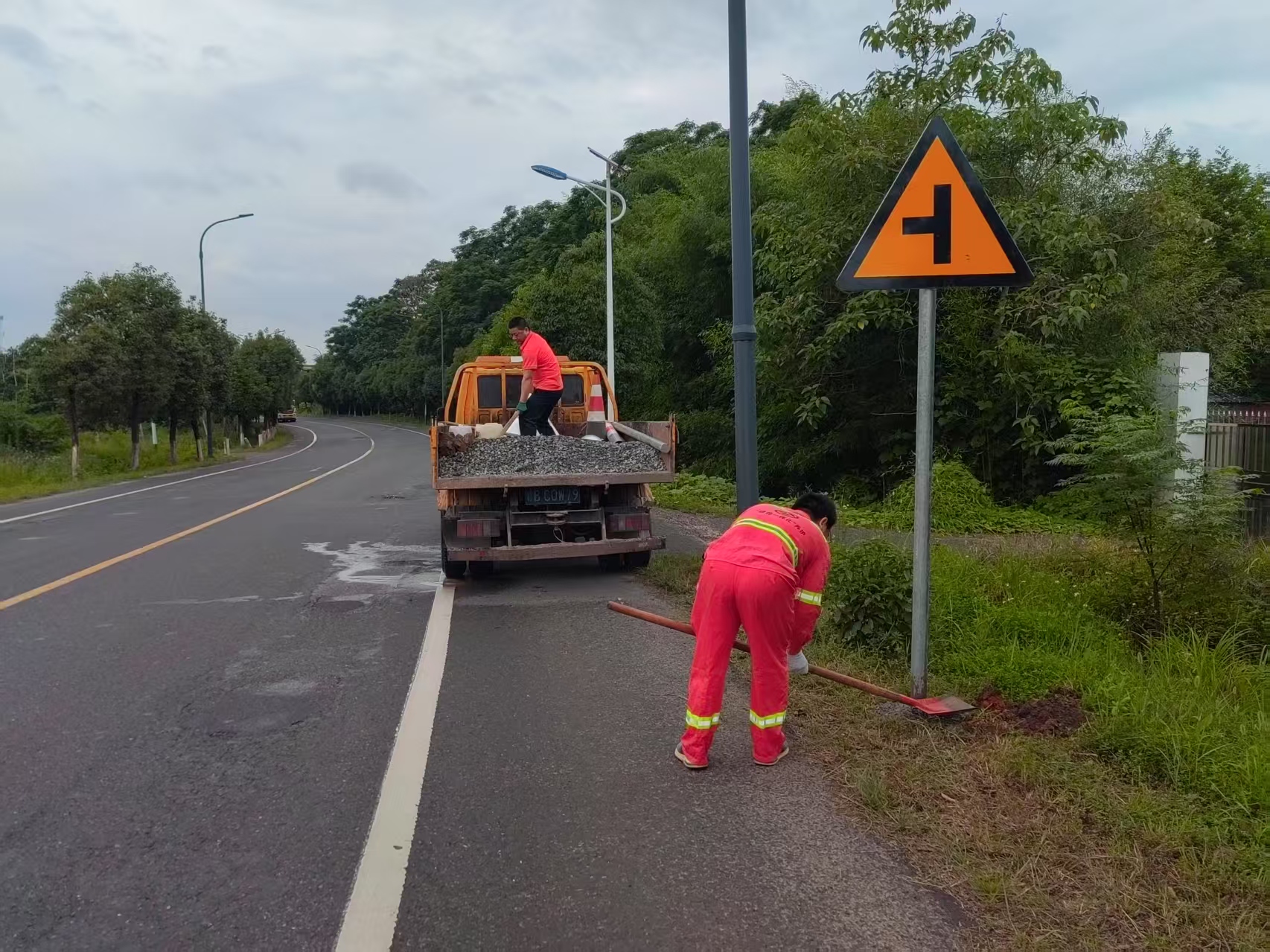 025年6月18日,信丰公路分中心机械化作业组在S317 线K142处埋设标牌、路口安全柱