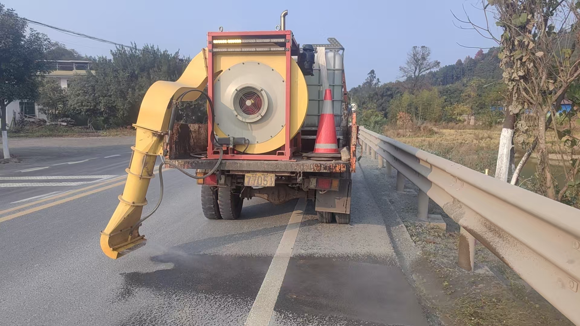 2025年12月3日,信丰公路分中心机械化作业组清洗路面