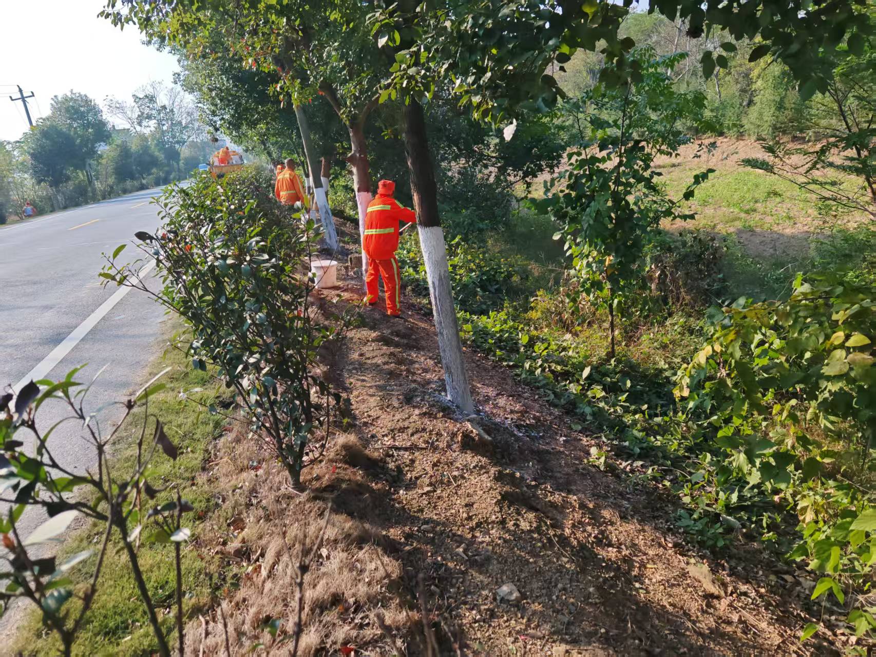 2025年12月9日,信丰公路分中心新田道班养护人员整治路容