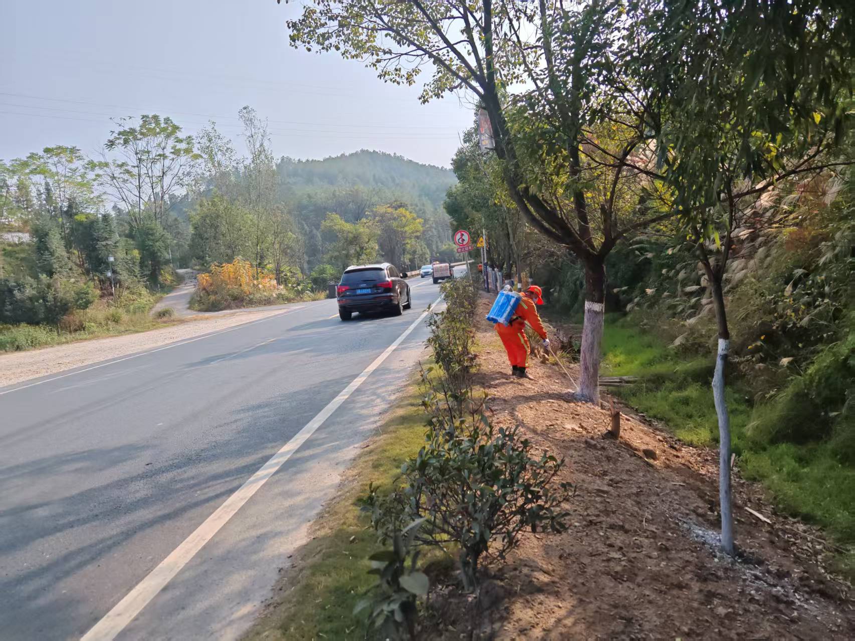 2025年12月4日,信丰公路分中心新田道班养护人员整治路容