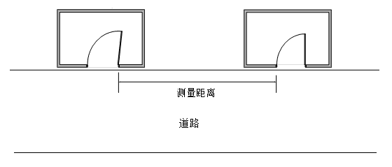 (一)申请点与参照点位于道路同侧的,以申请点与参照点之间最近门边行人可无障碍通行的最短距离进行测量(图1)。