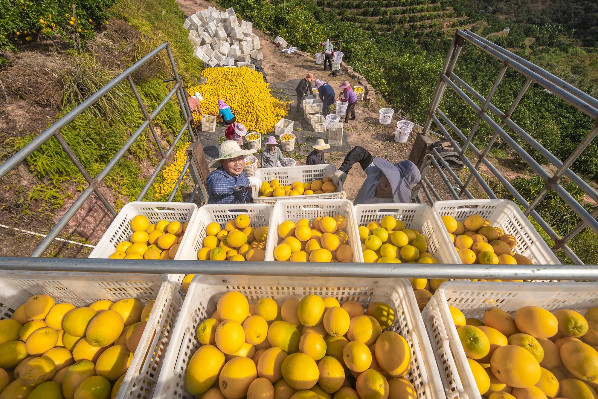 走进信丰县大桥镇新塘村脐橙基地,金灿灿的脐橙挂满枝头,果农们穿梭其中,熟练地采摘、装筐、分拣、装车。果农曹春平脸上洋溢着丰收的喜悦:“我的果园面积将近200亩,今年产量预计超60万斤,果子不愁卖,老客户们早就预定了大部分产量,还有不少新客户也正在和我们洽谈对接”。