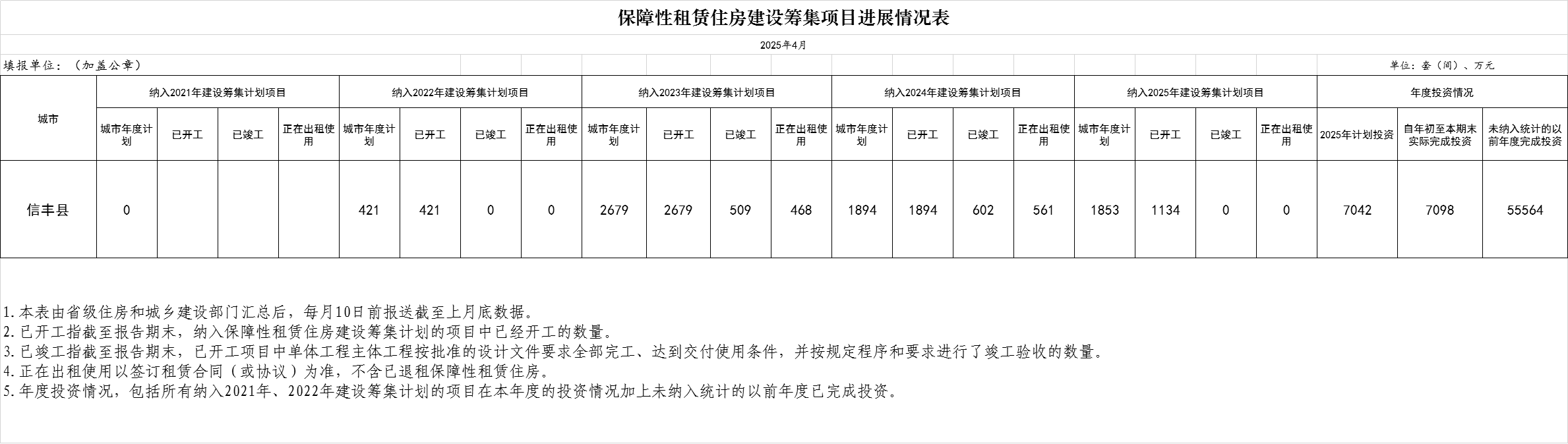 2025年保障性租赁住房建设筹集项目进展情况表(4月)