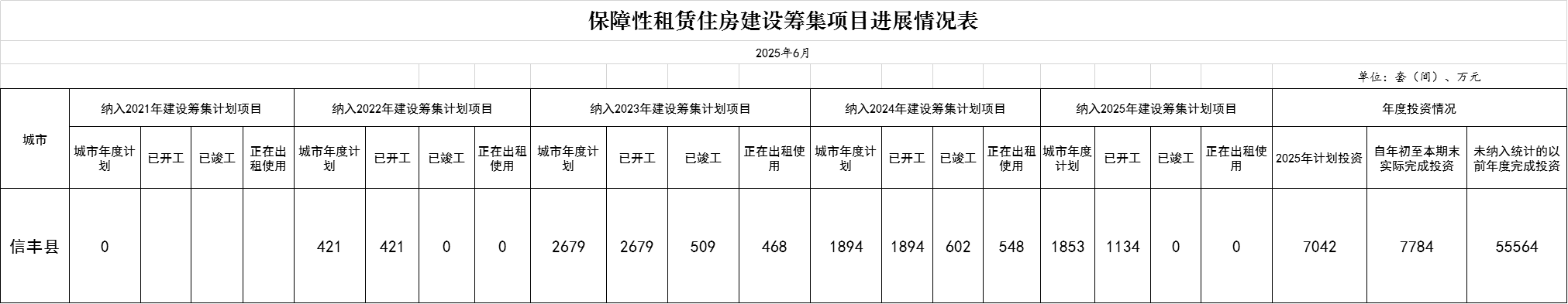 2025年保障性租赁住房建设筹集项目进展情况表(6月)