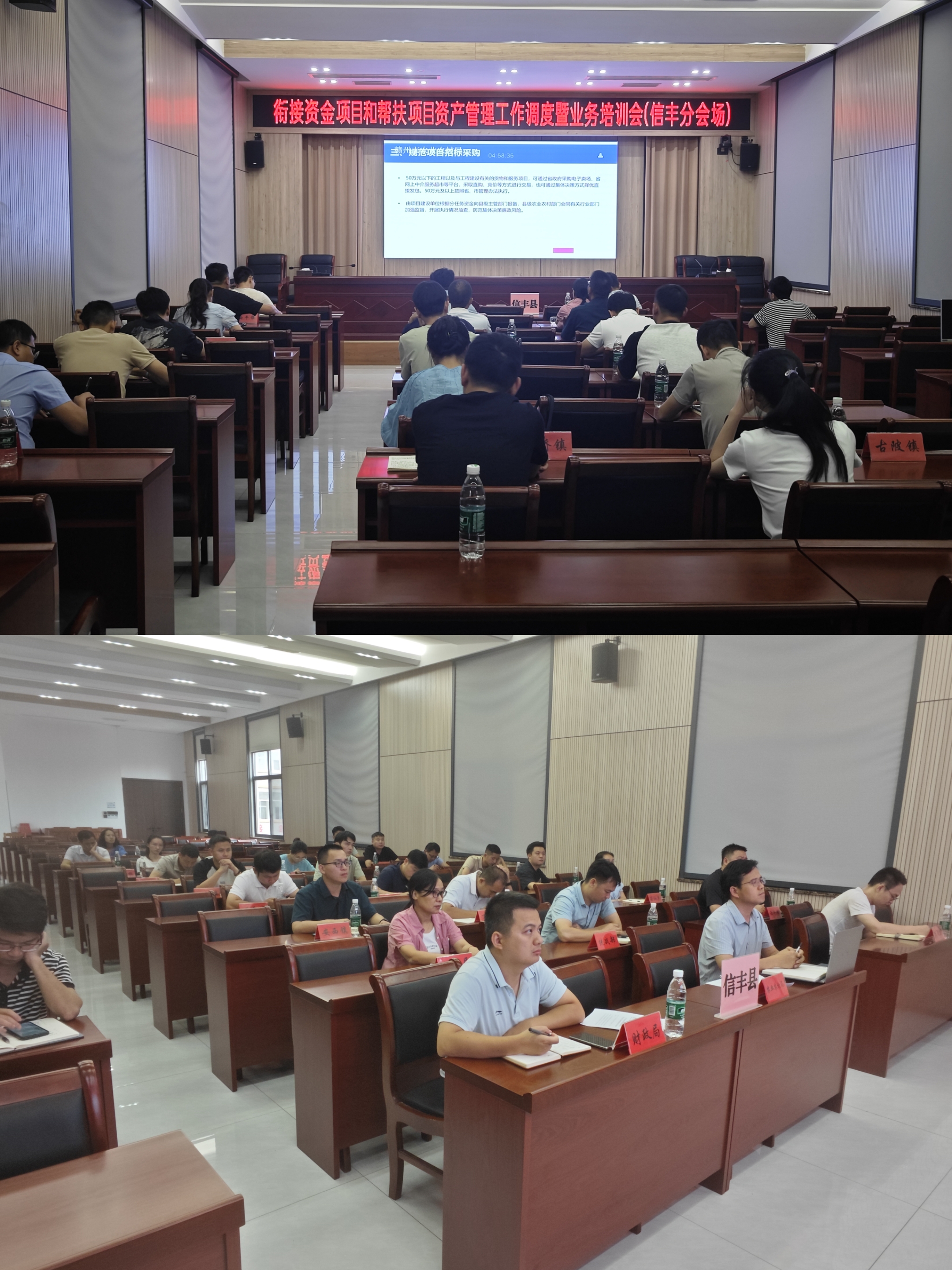 7月22日下午,全市衔接资金项目和帮扶项目资产管理工作调度暨业务培训会召开,县农业农村局、县财政局分管领导,县发改委、县委统战部、县林业局、各乡(镇)业务负责人、衔接资金工作站相关人员在信丰分会场收听收看。会议流程:1.讲解衔接资金小额工程建设项目管理和帮扶项目资产管理有关政策要求;2.讲解衔接资金项目绩效管理有关政策要求;3.讲解衔接资金(以工代赈任务)项目管理政策要求;4.讲解衔接资金(欠发达国有林场任务)项目管理政策要求;5.讲解衔接资金(少数民族发展任务)项目管理政策要求。