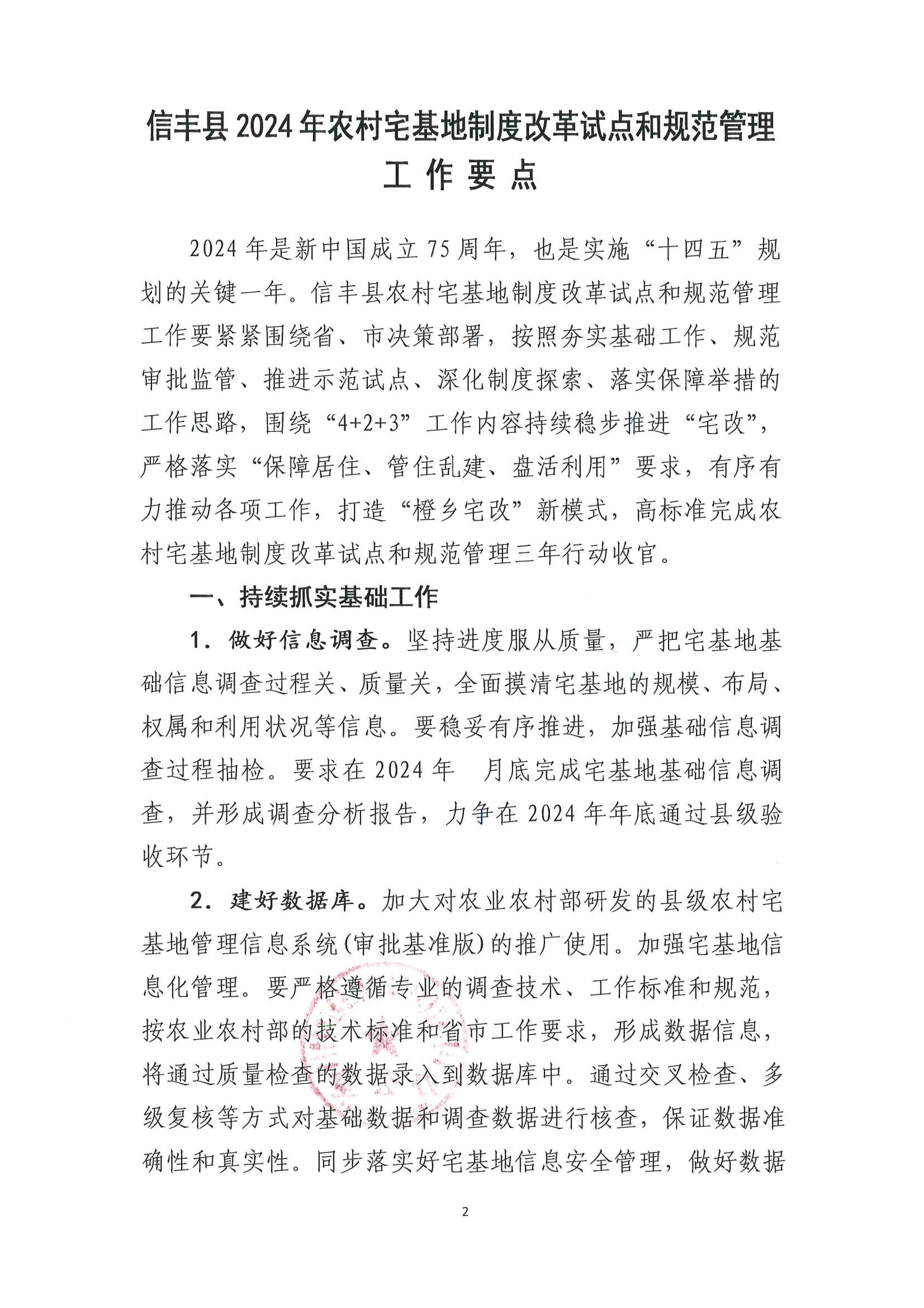 信丰县2024年农村宅基地制度改革试点和规范管理工作要点