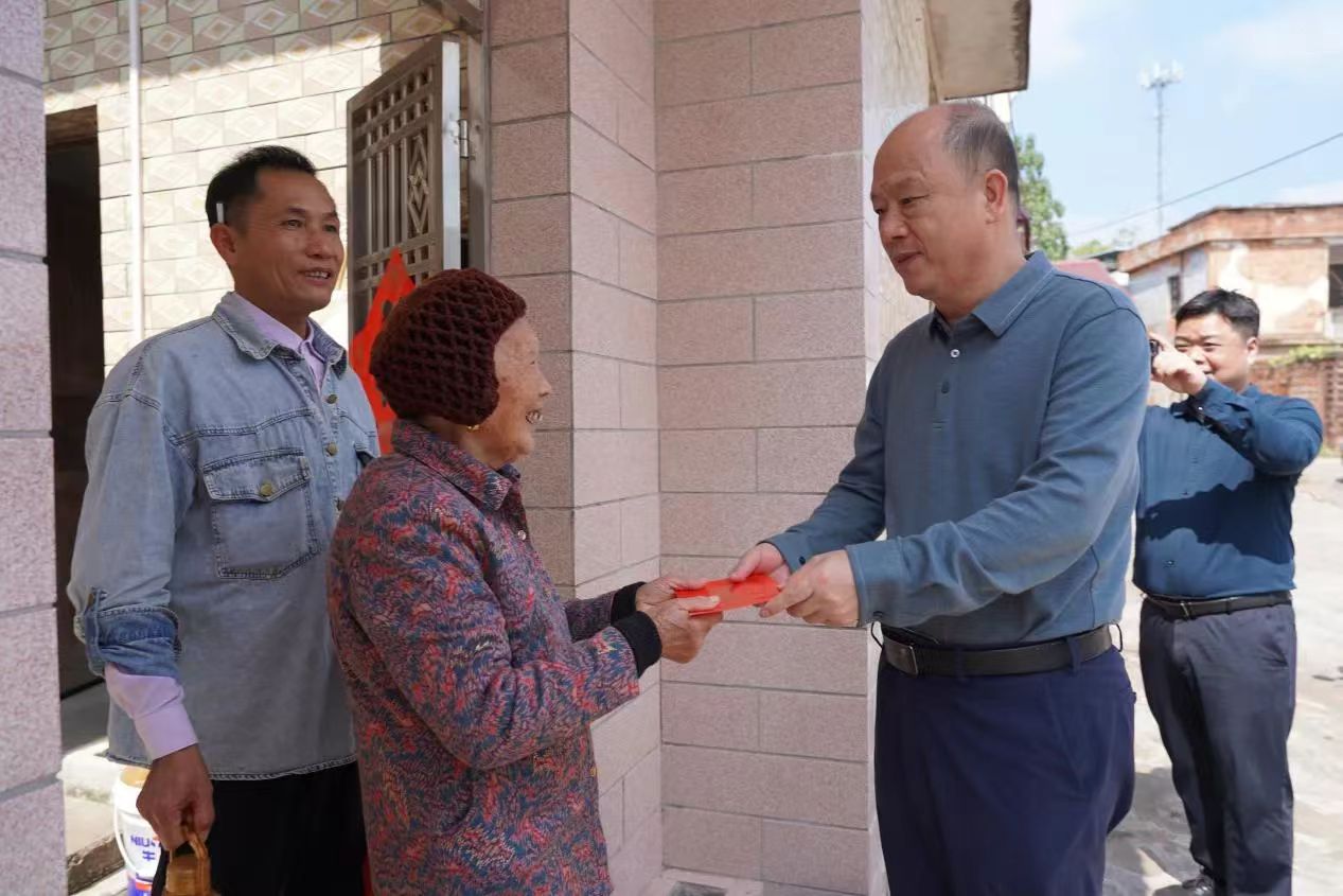在信丰县大阿镇敬老院,李鉴庆向老人们送去节日问候和祝福,他表示,老年人是家庭和社会的宝贵财富,营造人人爱老护老的社会环境、大力宣传积极老龄化观念需要全社会共同努力,市慈善总会会将持续加大慈善助老帮扶力度,持续聚焦民生、关注特殊困难老年群体,祝福老年人节日快乐,在敬老院颐养天年。在部分困难老年人家中,李鉴庆与他们亲切交谈,叮嘱他们要积极乐观快乐生活,让老人们充分感受到慈善的温暖。