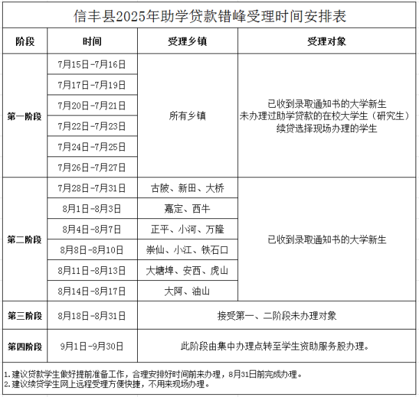 集中办理地点:信丰县体育中心西门二楼国家开发银行生源地信用助学贷款信丰县办理中心(中侨路博大花苑对面)