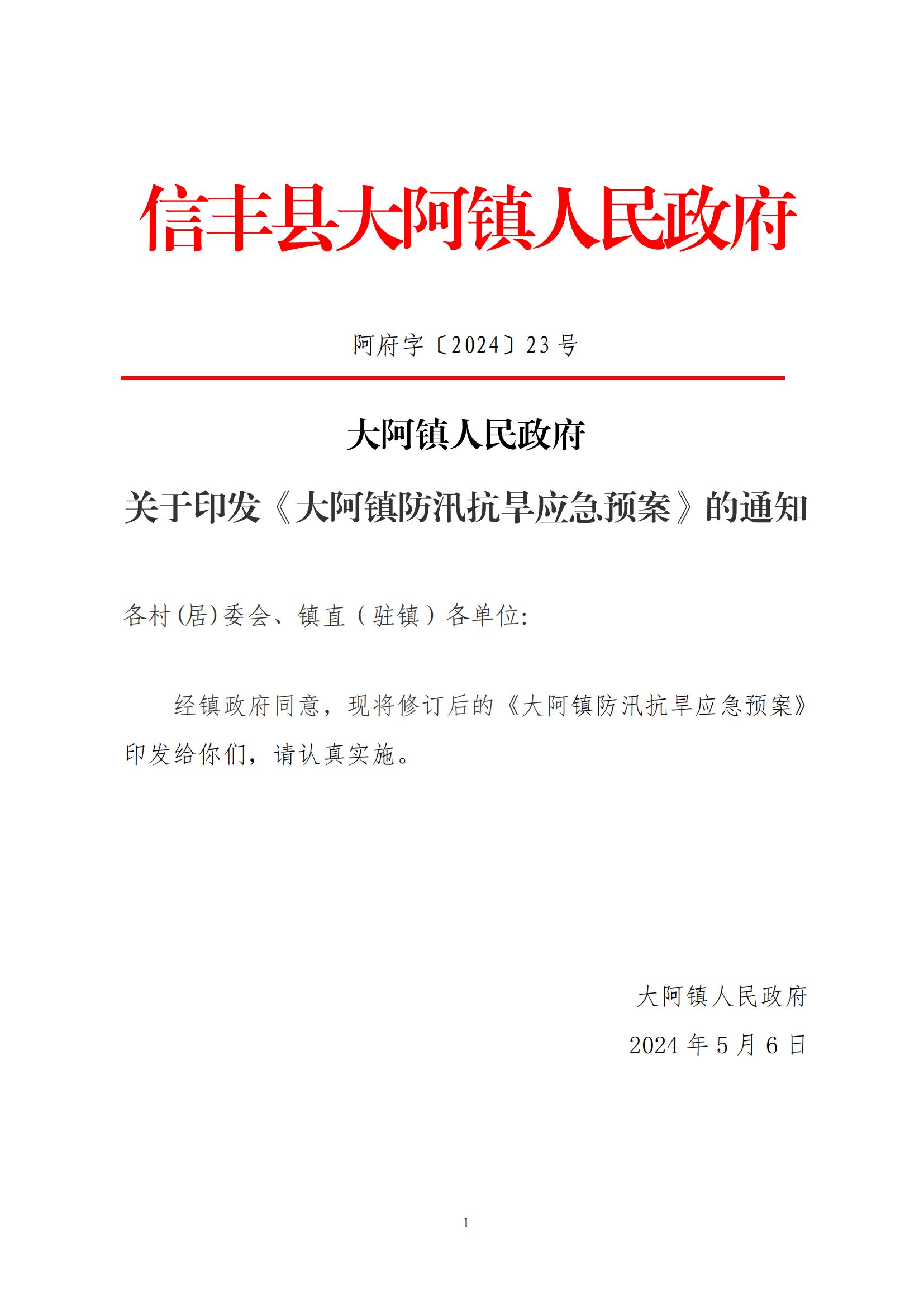 阿府字〔2024〕23号关于印发《大阿镇防汛抗旱应急预案》的通知