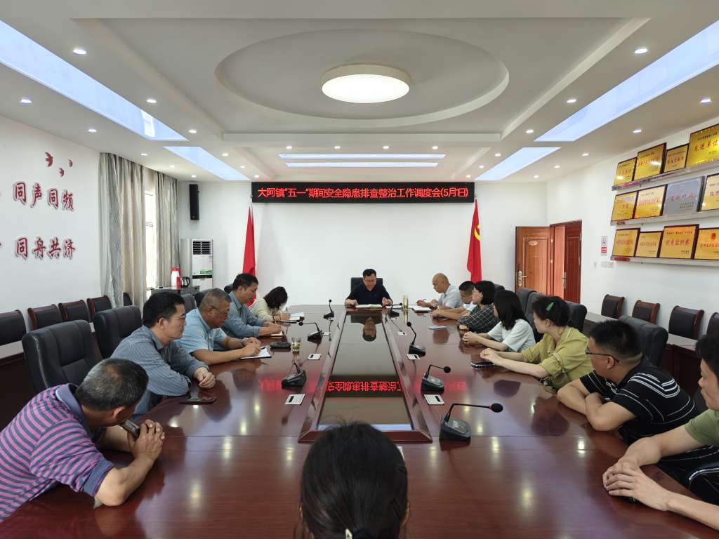 为落实省、市、县安全生产部署要求,切实做好“五一”期间安全防范工作,5月1日,大阿镇组织召开“五一”期间安全隐患排查整治工作调度会,会议分析研判了辖区消防安全、农业农村领域安全生产形势,分管领导传达了全县安全生产会议精神,镇党委书记段德峰就做好当前安全生产工作做出部署:一是要充分认清当前安全生产严峻形势。二是要多措并举强化安全宣传力度。三是要开展拉网式安全隐患排查整治。四是要分工负责形成合力。五是要强化值班值守和信息报告。
