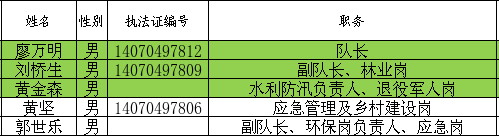 执法人员清单及其执法证件信息(如姓名、单位、证件编号等)