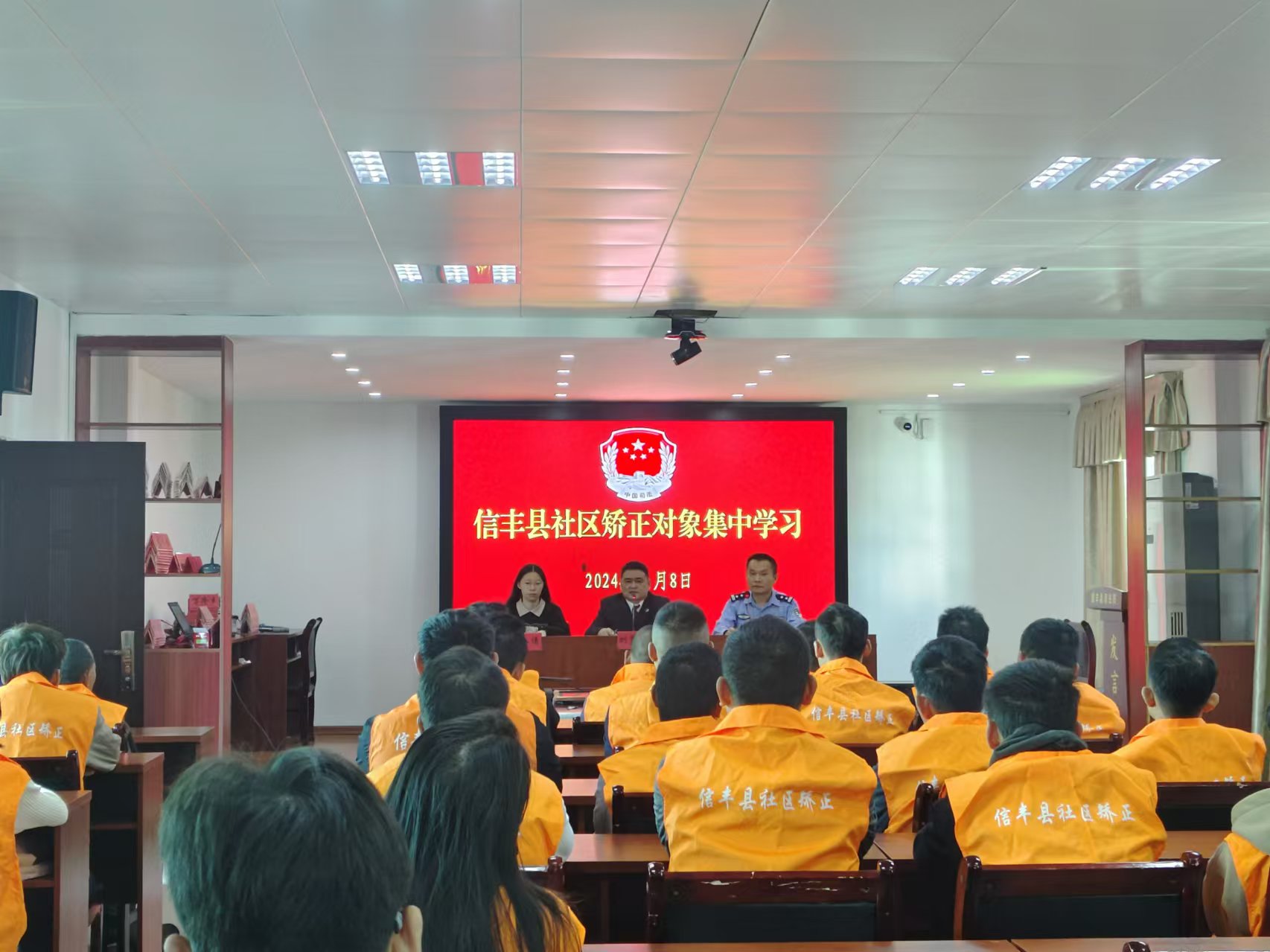 在本次活动中,首先由县检察院检委会专职委员刘翌隽开展警示教育,对社区矫正工作的重要性和严肃性进行了强调,要求社区矫正对象要明确在矫意识,通过讲解社区矫正对象因违反规定被收监执行的案例,为在场的社区矫正对象敲响了警钟,使他们更加明晰地认识到社区矫正的严肃性和权威性。 其次由赣西强戒所派驻民警赵经纬开展禁毒宣传,通过观看视频、演示PPT、讲解案例的方式,普及毒品类型、毒品传播方式、毒品成瘾机制等知识,着重介绍了新列管的依托米脂、右美沙芬等精神药物,要求社区矫正对象应严守法律红线,规避风险场所,主动远离可能存在安全风险隐患或不良诱惑的场所。