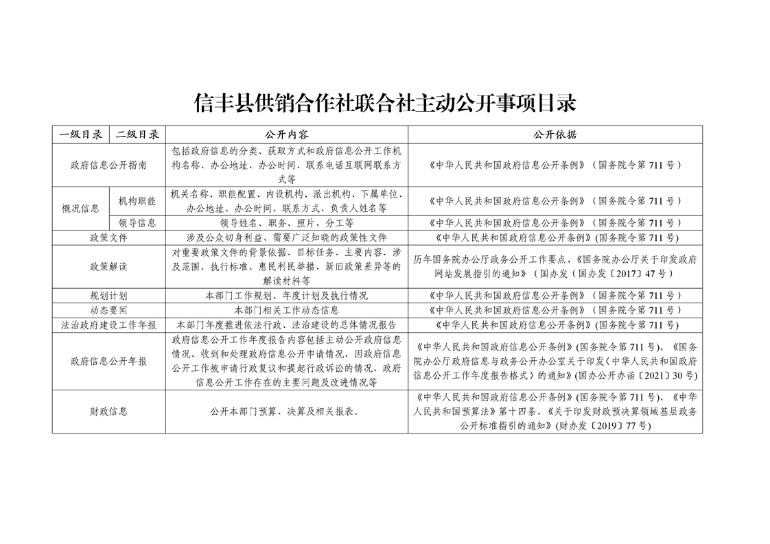 信丰县供销合作社联合社主动公开事项目录