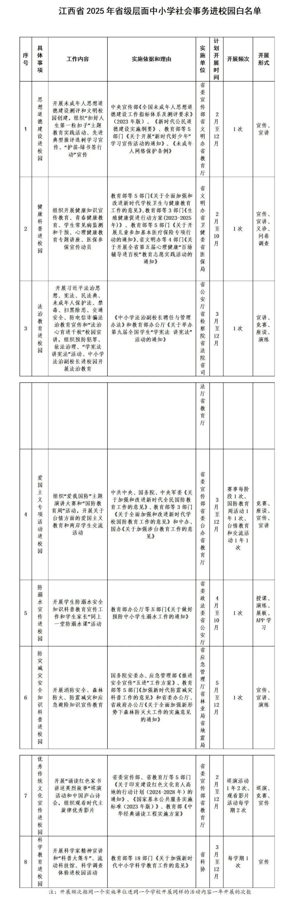 江西省2025年省级层面中小学社会事务进校园白名单公布!