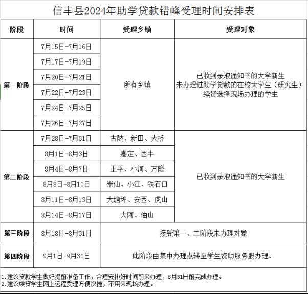 集中办理地点:信丰县体育中心西门二楼国家开发银行生源地信用助学贷款信丰县办理中心(中侨路博大花苑对面)