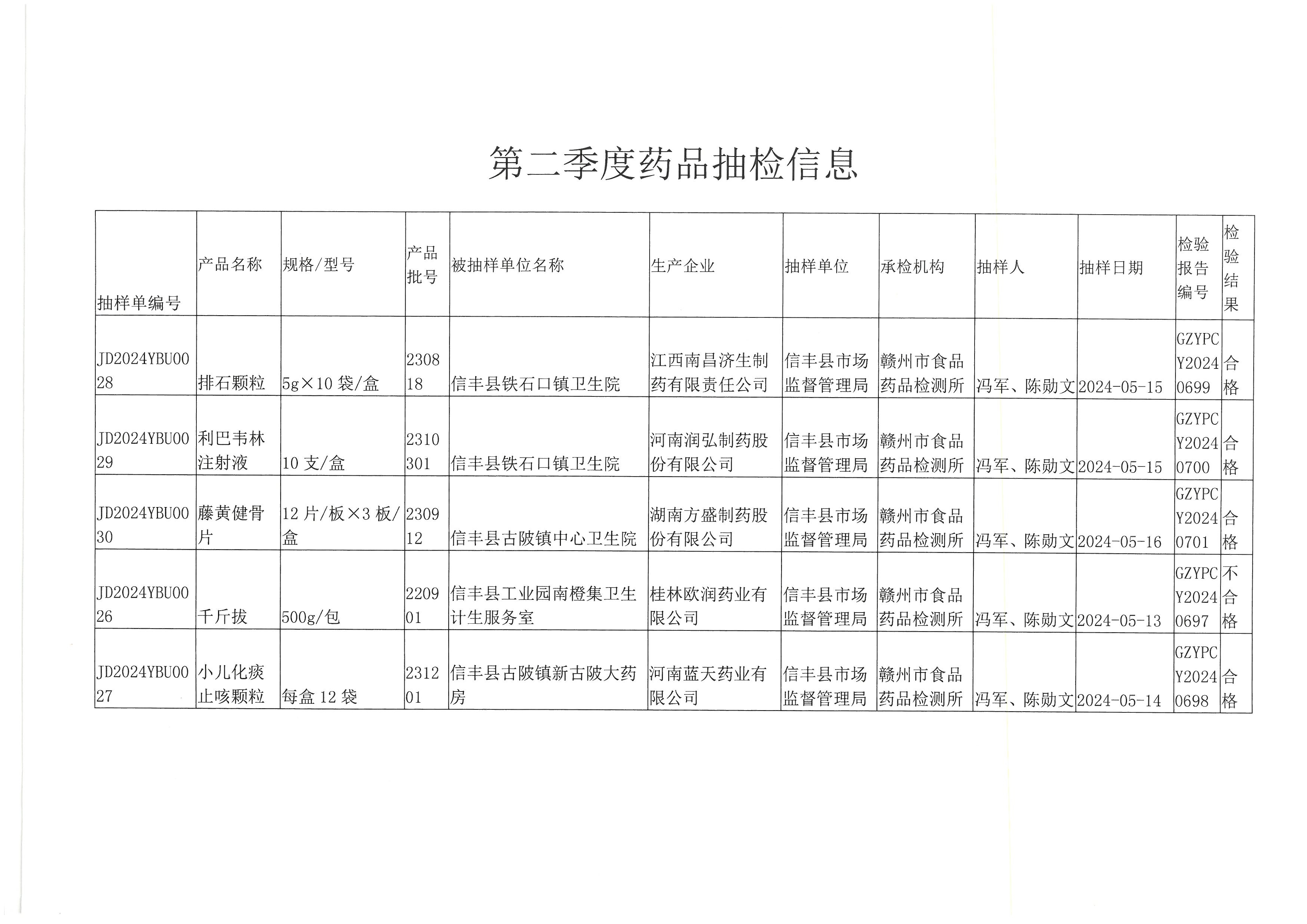 信丰县市场监督管理局2024年二季度药品抽检情况公示