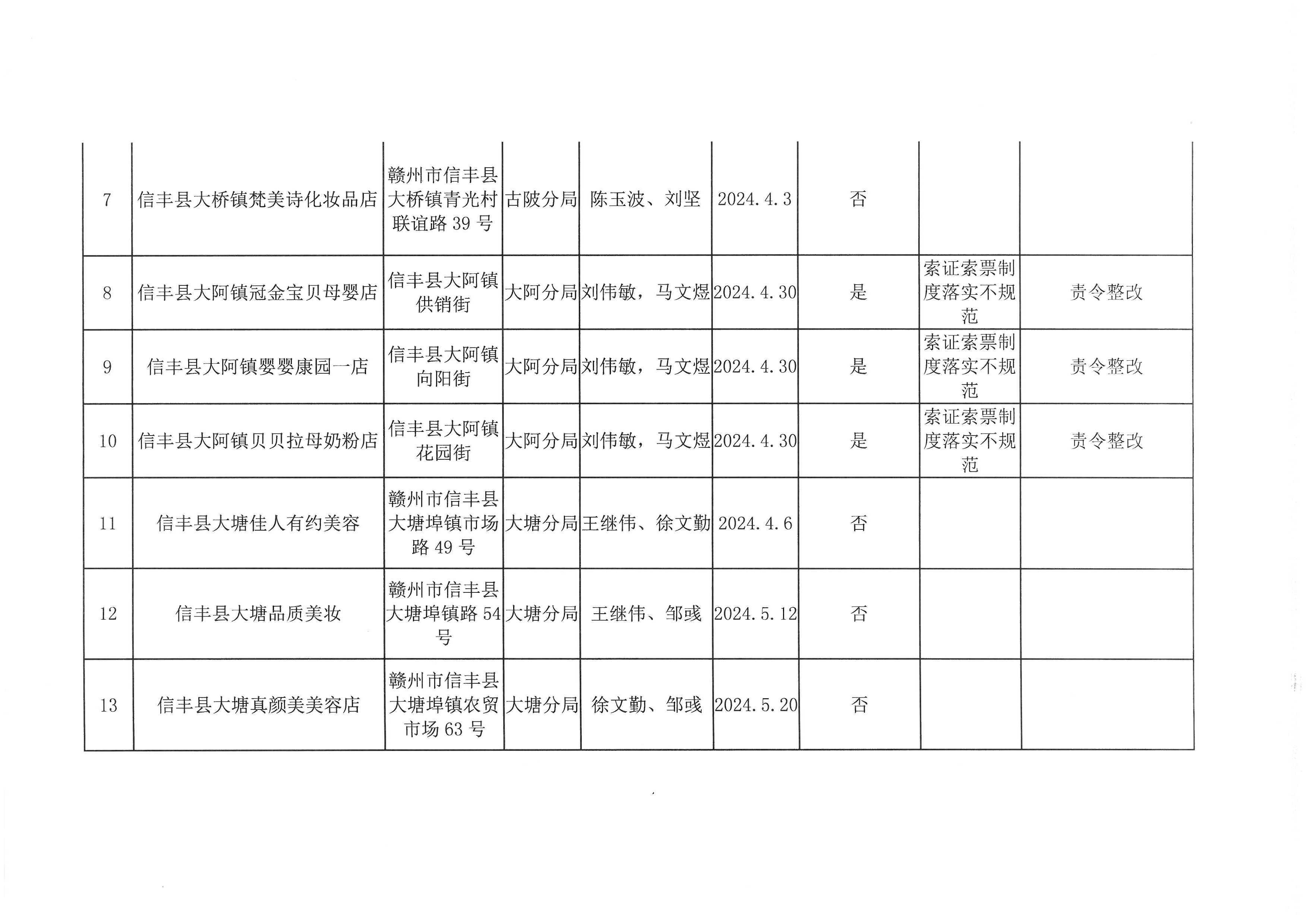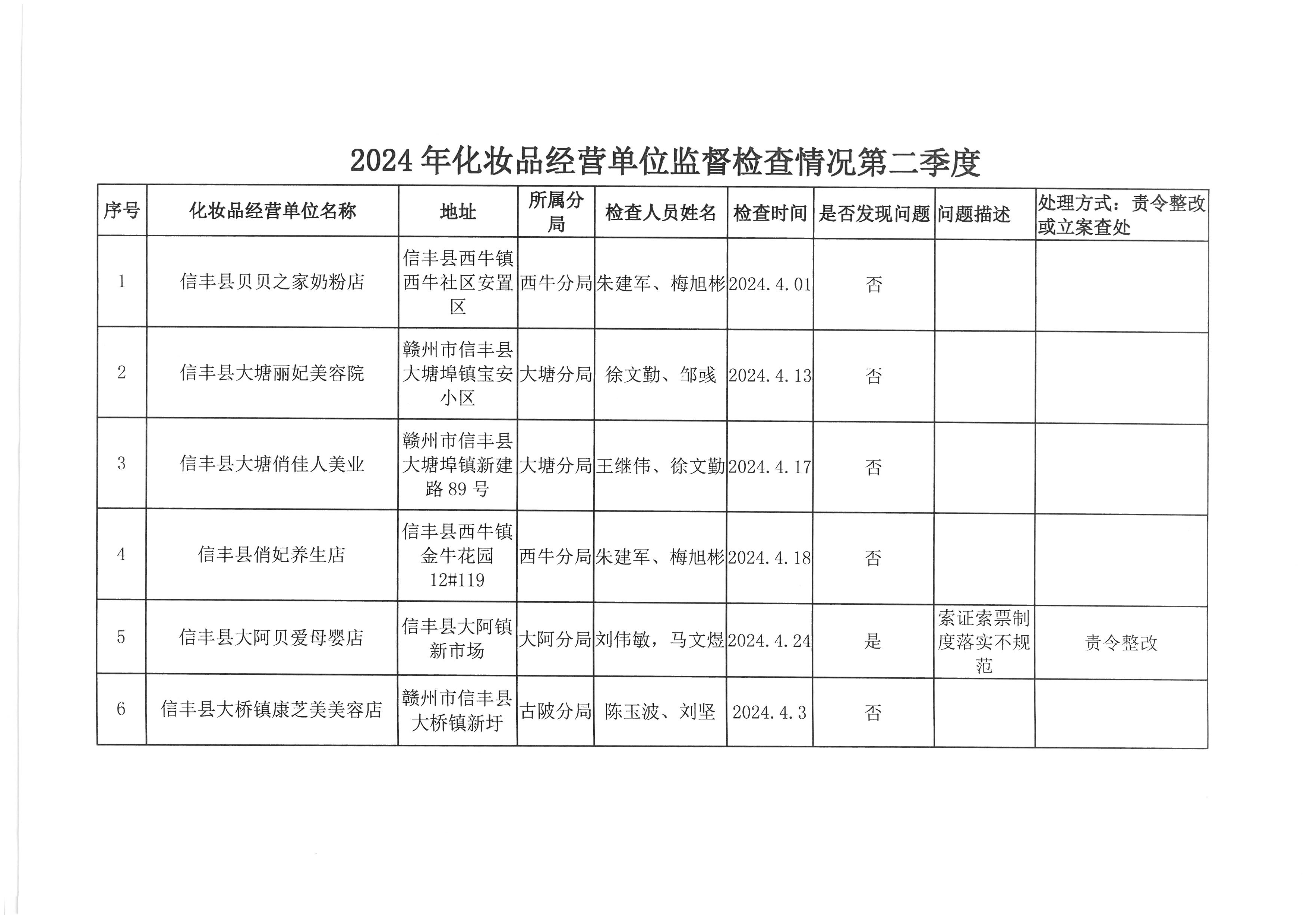 (检查结果)2024年信丰县市场监督管理局化妆品销售单位二季度日常监督检查情况