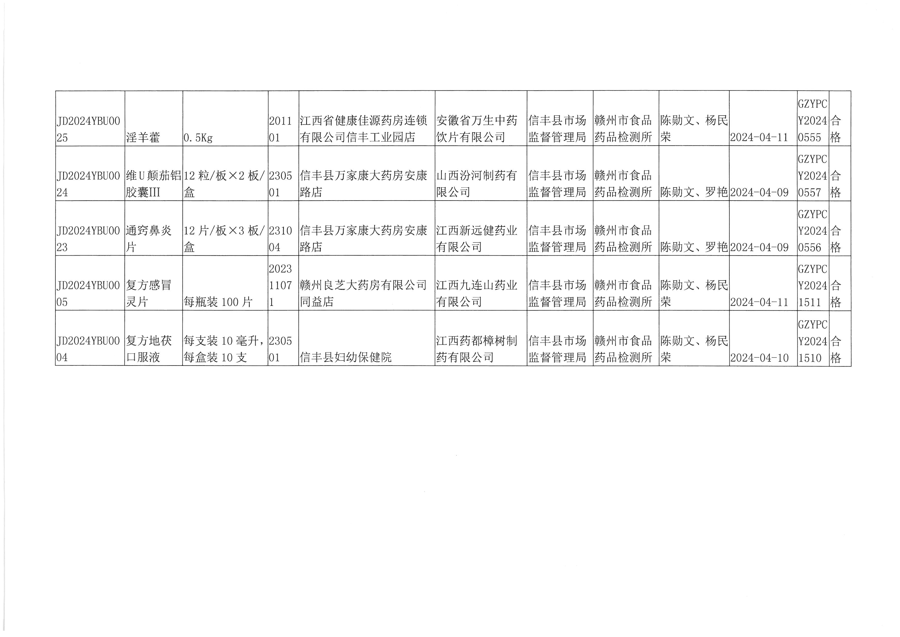 (检查结果)信丰县市场监督管理局2024年二季度药品抽检情况公示