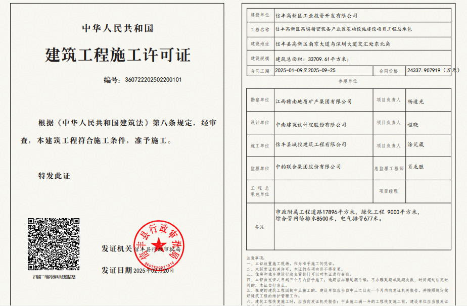 信丰高新区高端精密装备产业园基础设施建设项目工程总承包施工有关信息公示
