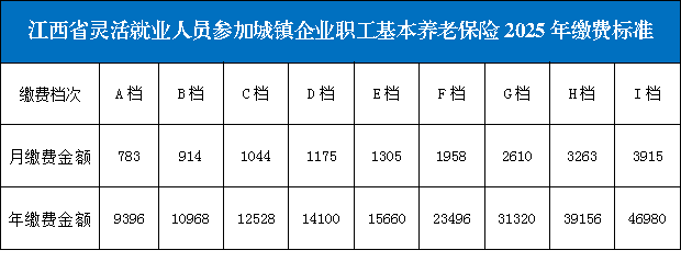 一、2025年江西省灵活就业人员参加城镇企业职工养老保险缴费档次表