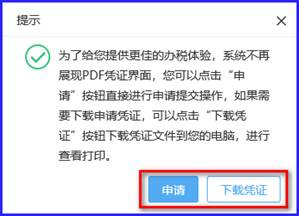 5.资料上传完毕后回到退抵税申请页面,点击保存按钮和下一步按钮提交申请。系统会提示下载申请凭证信息,点击【申请】按钮,弹出电子签章页面,选择刷脸方式,进行实名认证。
