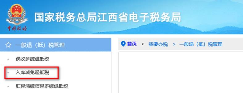 2.登录后在我要办税栏目,点击【一般退(抵)税管理】,再点击【入库减免退抵税】。