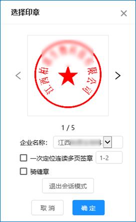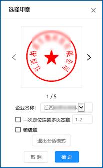 点击页面企业签章按钮,选择对应的公章后,调整公章位置,完成盖章。