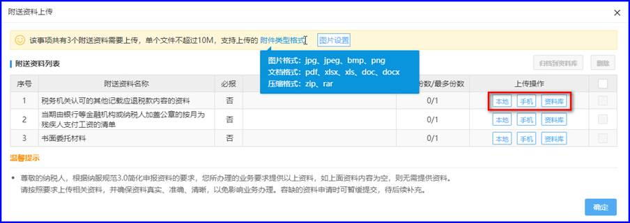 可上传图片、文档或者压缩包,单个文件不能超过10M,也可点击手机按钮,通过手机扫描二维码,上传资料。