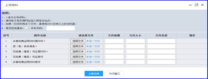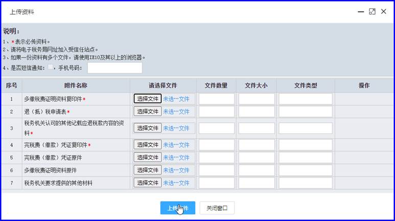 点击上传文件按钮,进入资料上传页面。(因电子税务局资料上传页面未更新,下面页面截图显示需要上传的资料可能不准确)