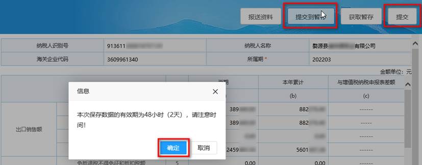 核实数据无误后,点击提交到暂存按钮,保存汇总表数据,点击提交按钮。