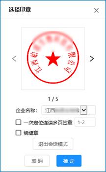 进入电子签章页面后,点击企业签章按钮,选择对应的印章,点击确定,调整印章位置后,完成盖章。