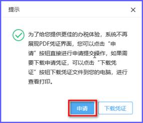 点击提交按钮,完成退税申请,系统显示申请回执。