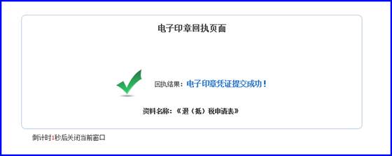 盖章完成后点击提交按钮完成退抵税申请的提交,系统显示涉税事项受理回执单。