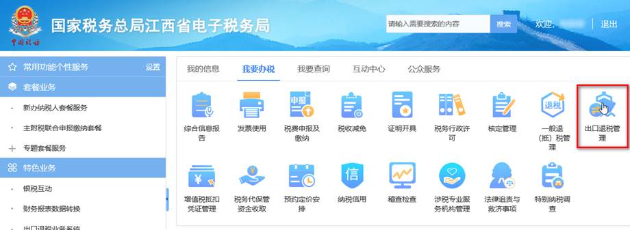 功能说明:纳税人申请出口退税,可通过【出口退税管理】功能发起退税申请。