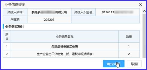 在表单列表点击【免抵退申报汇总表】功能,系统弹出退税汇总计算界面,点击确认按钮,系统自动填报汇总表。