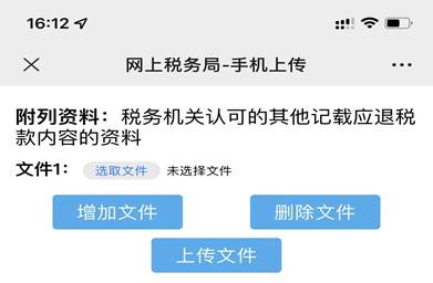 点击上传文件按钮,进入资料上传界面。(因电子税务局资料上传页面未更新,下面页面截图显示需要上传的资料可能不准确)