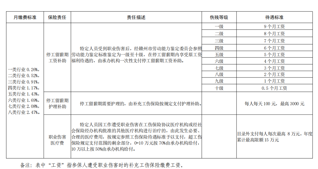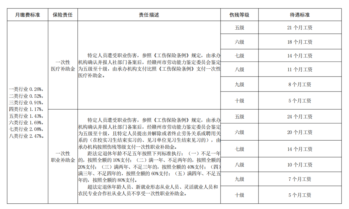 赣州市人民政府办公室印发《赣州市补充工伤保险办法》,旨在健全多层次工伤保险体系,为超过法定退休年龄、新就业形态从业人员等群体提供更全面的职业伤害保障。该办法于2024年8月20日正式施行,快来一起了解关键信息吧!