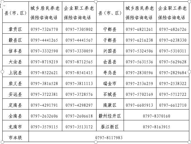 各县(市、区)社保经办机构咨询电话