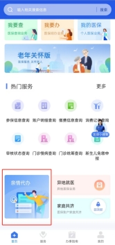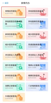 2.在APP首页找到“亲情代办”栏目,点击进入,再点击“亲情成员绑定”。