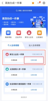 2. 在赣服通首页找“一件事专区”点击进入,选择“新生儿出生一件事”,点击“立即办理”。