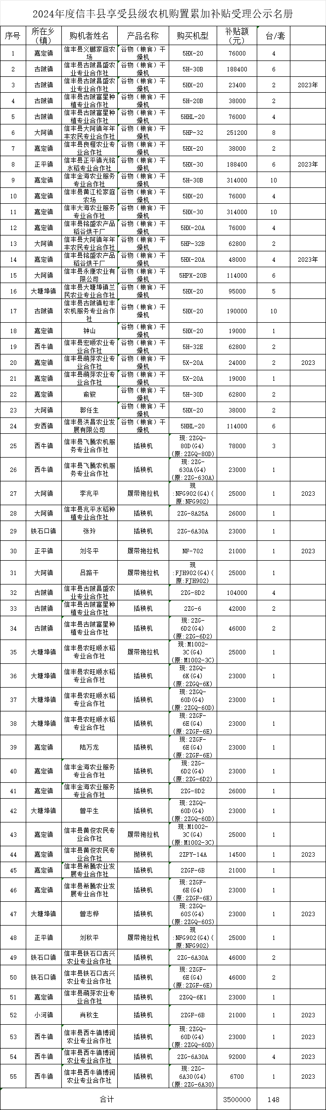 #关于2024年信丰县县级农机购置累加补贴名单的公示#