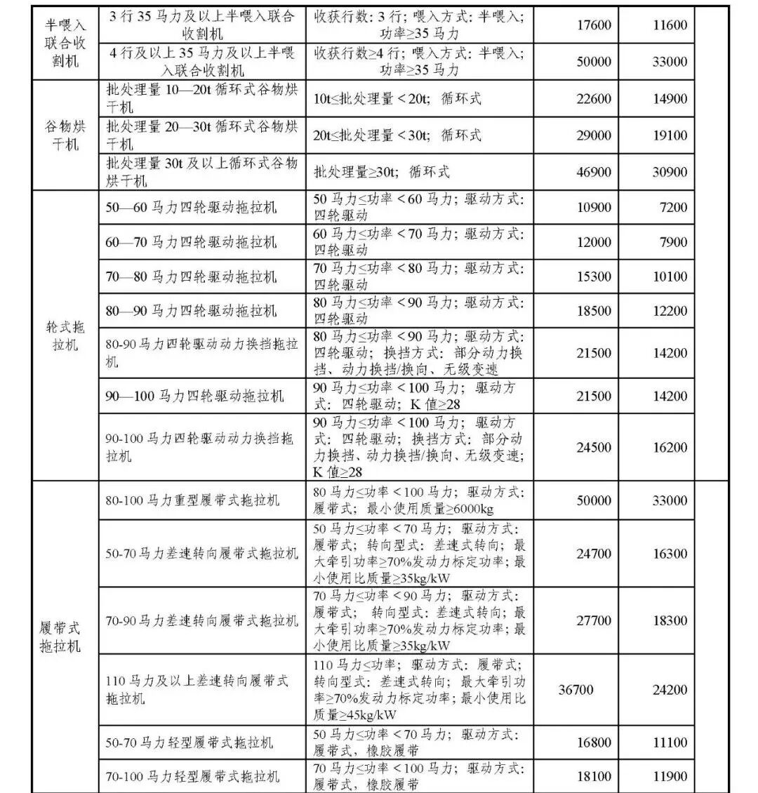 (一)补贴机具品目旋耕机、水稻直播机、水稻插秧机、植保无人机、联合收割机、谷物烘干机、轮式拖拉机和履带式拖拉机等粮食生产农业机械。