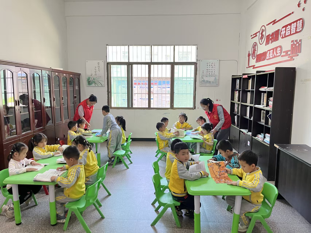 活动当天,小朋友们在老师和实践站志愿者的带领下,怀着兴奋与好奇走进农家书屋。五彩斑斓的儿童绘本、趣味十足的故事书,瞬间吸引了孩子们的目光。他们迫不及待地挑选自己喜爱的书籍,沉浸在阅读的世界里。有的小朋友轻轻翻动书页,认真地看着图画;有的则拉着小伙伴,分享书中有趣的情节,童言童语在书屋内回荡。