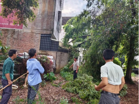 日下午,大星村岭排高小组因树木被狂风大雨吹到,砸向旁边村民房屋及雨棚,大星村干部第一时间到现场组织人员清理房屋树木和调解两家村民雨棚修复工作。