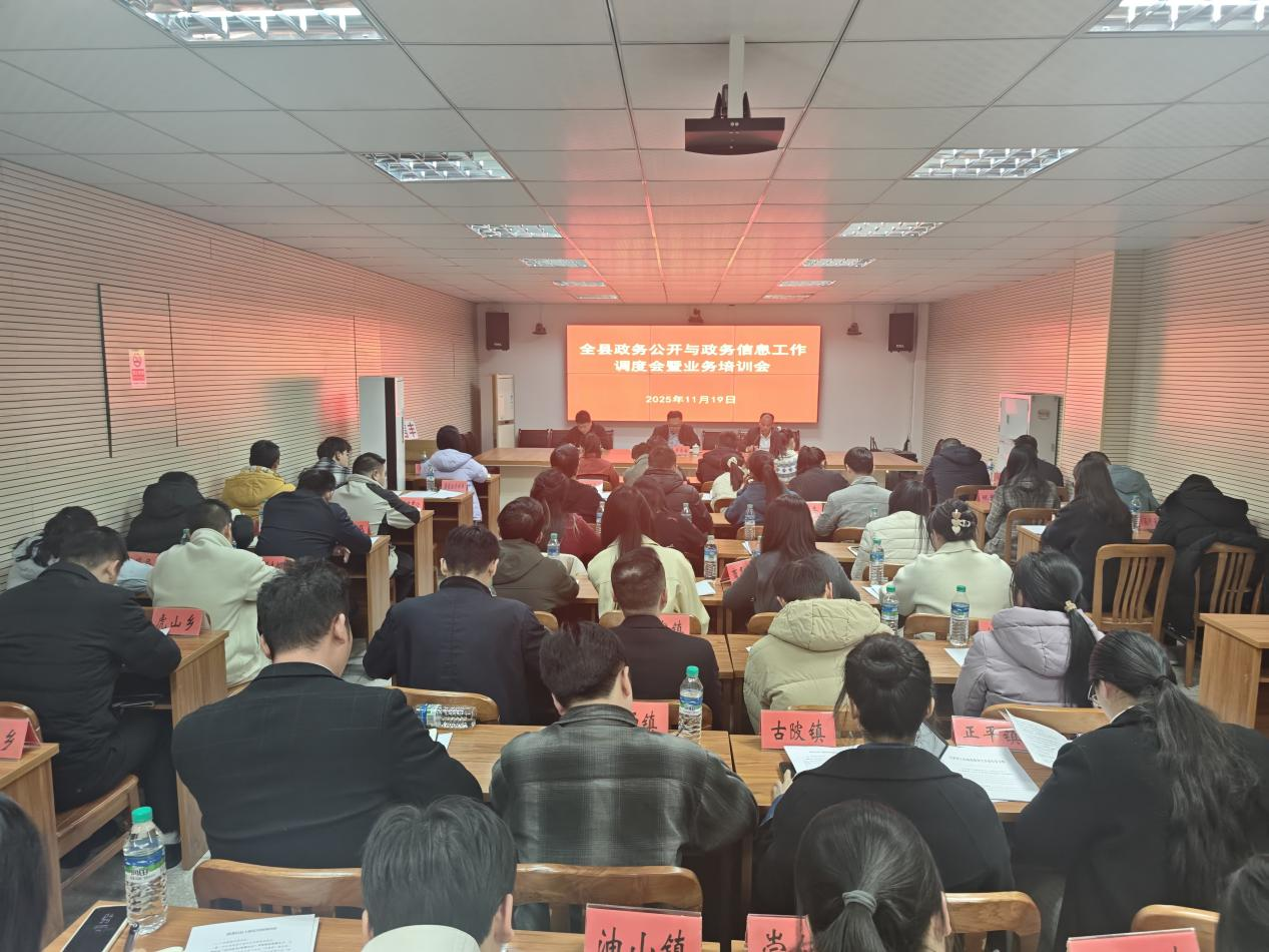 为深入贯彻落实国家、省、市关于新时代政务公开工作的部署要求,进一步提升全县政务公开工作质效,2025年11月19日下午,信丰县组织召开政务公开与政务信息工作调度会暨业务培训会。县政府党组成员、县政府办党组书记、主任郭建雄出席会议并作动员讲话,县金融服务中心副主任曾志敏主持会议。各乡(镇)人民政府、县直(驻县)有关部门办公室主任或具体业务人员共60余人参加会议。