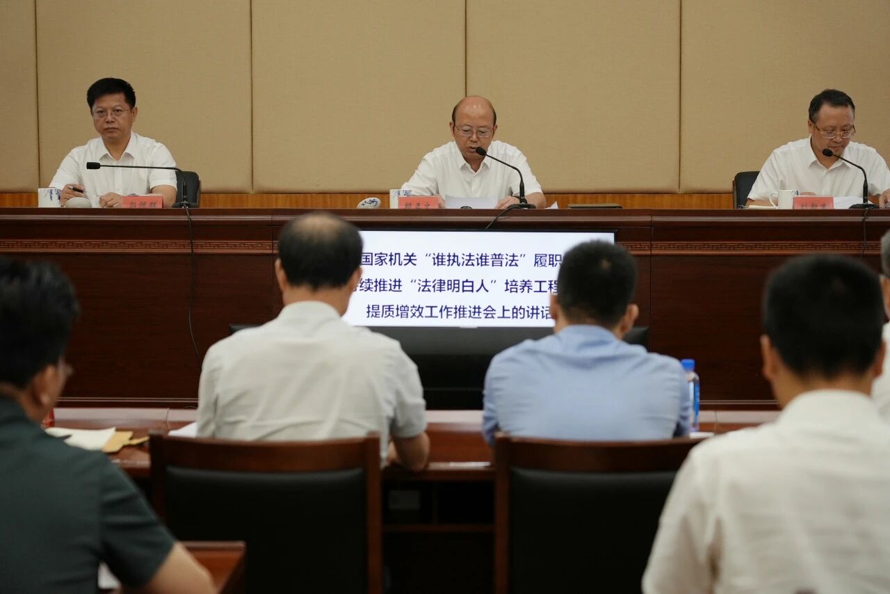 会议强调,要精准把握“抓什么”,提升全民普法的针对性实效性。要全面落实“谁执法谁普法”普法责任制,以制度化牵引提升普法执行力,全面压实普法责任清单制度和媒体公益普法制度。要紧扣普法重点,以精准化供给提升普法吸引力,强化领导干部带头学法,深入实施法治“护苗”行动,用法治护航青少年健康成长。要创新普法方式,以品牌化建设提升普法辐射力,加强短视频、直播普法,发挥典型案例的引导、规范、预防和教育功能。