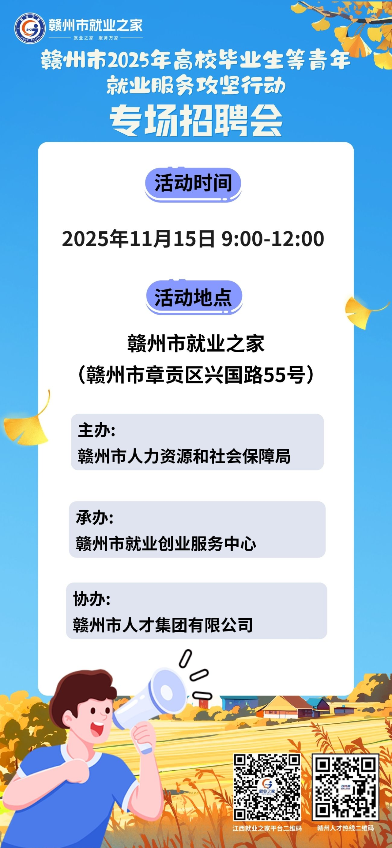 就在本周六!赣州市就业之家2025年高校毕业生等青年就业服务攻坚行动专场招聘会来啦