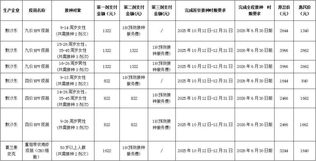 适龄人群在活动时间内完成首针接种及全程接种,可享受惠民政策;未在活动时间内完成全程接种或任一剂次不在活动规定时间内接种,不予享受惠民政策。